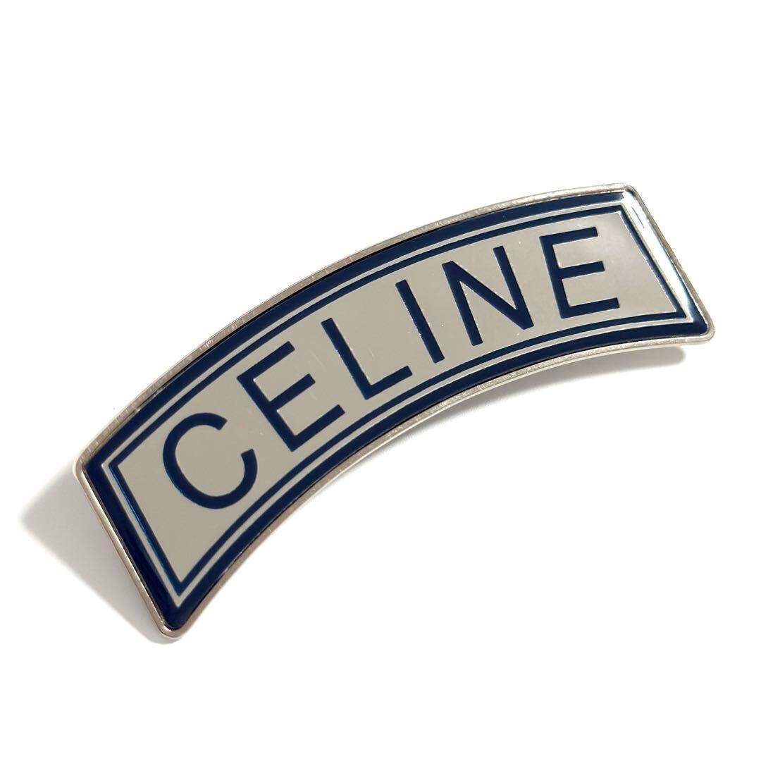【超美品】セリーヌ メンズ レディース ブローチ ピンバッジ ロゴ 青色