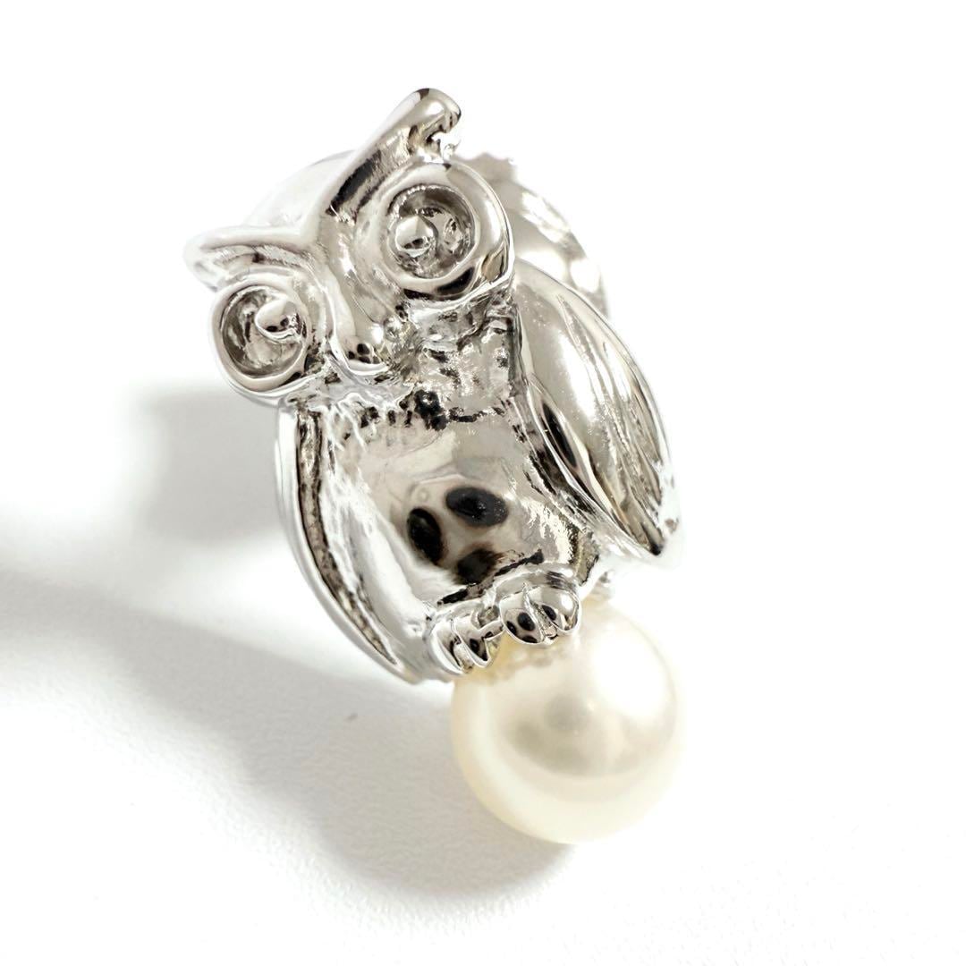【超美品】タサキ レディース ピン ブローチ フクロウ パール 真珠
