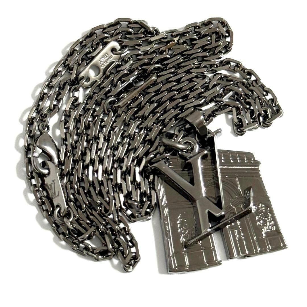 【超美品】ルイヴィトン メンズ ペンダント ネックレス 凱旋門 LV イニシャル
