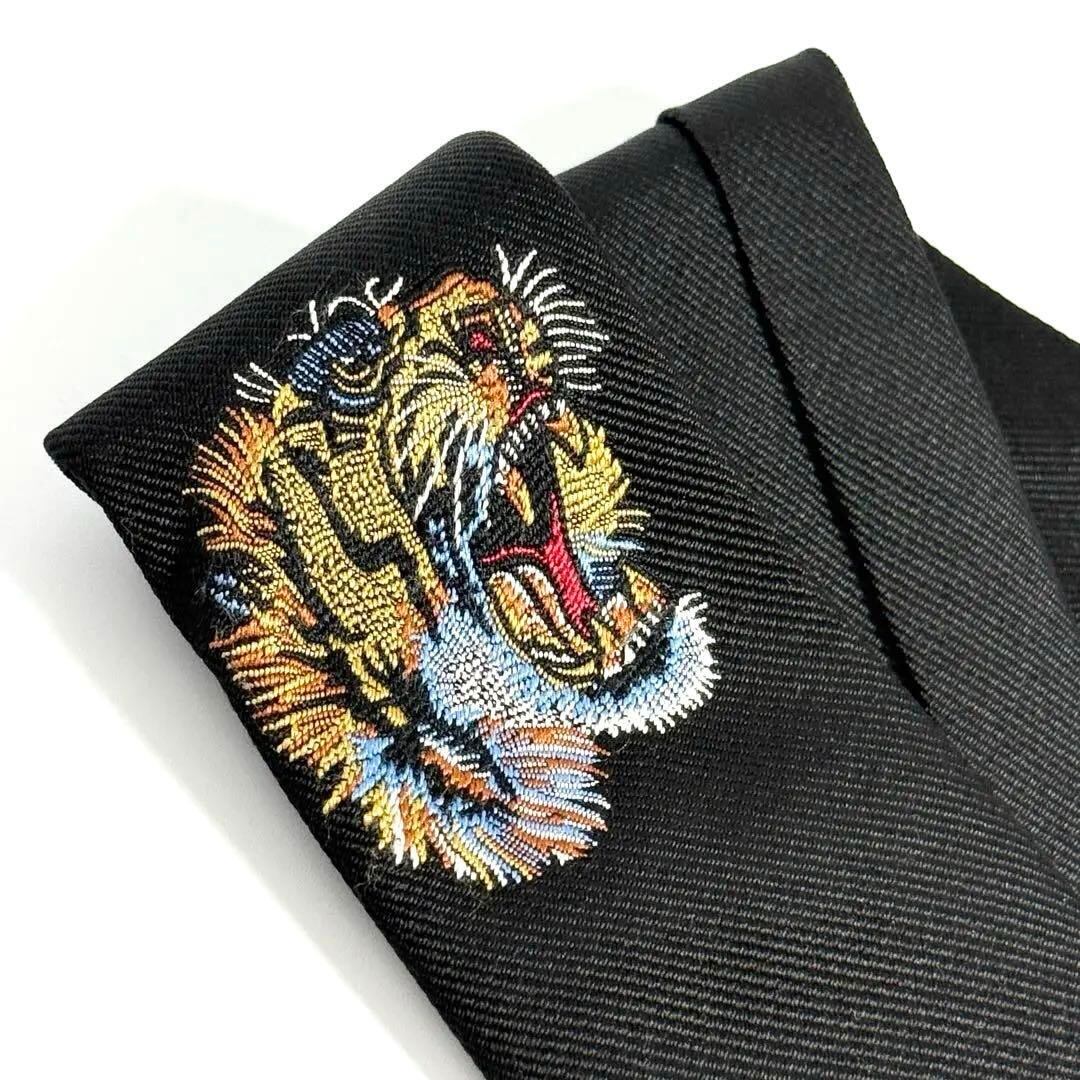 【人気】グッチ メンズ ネクタイ アンダーノット タイガー 虎 黒 シルク