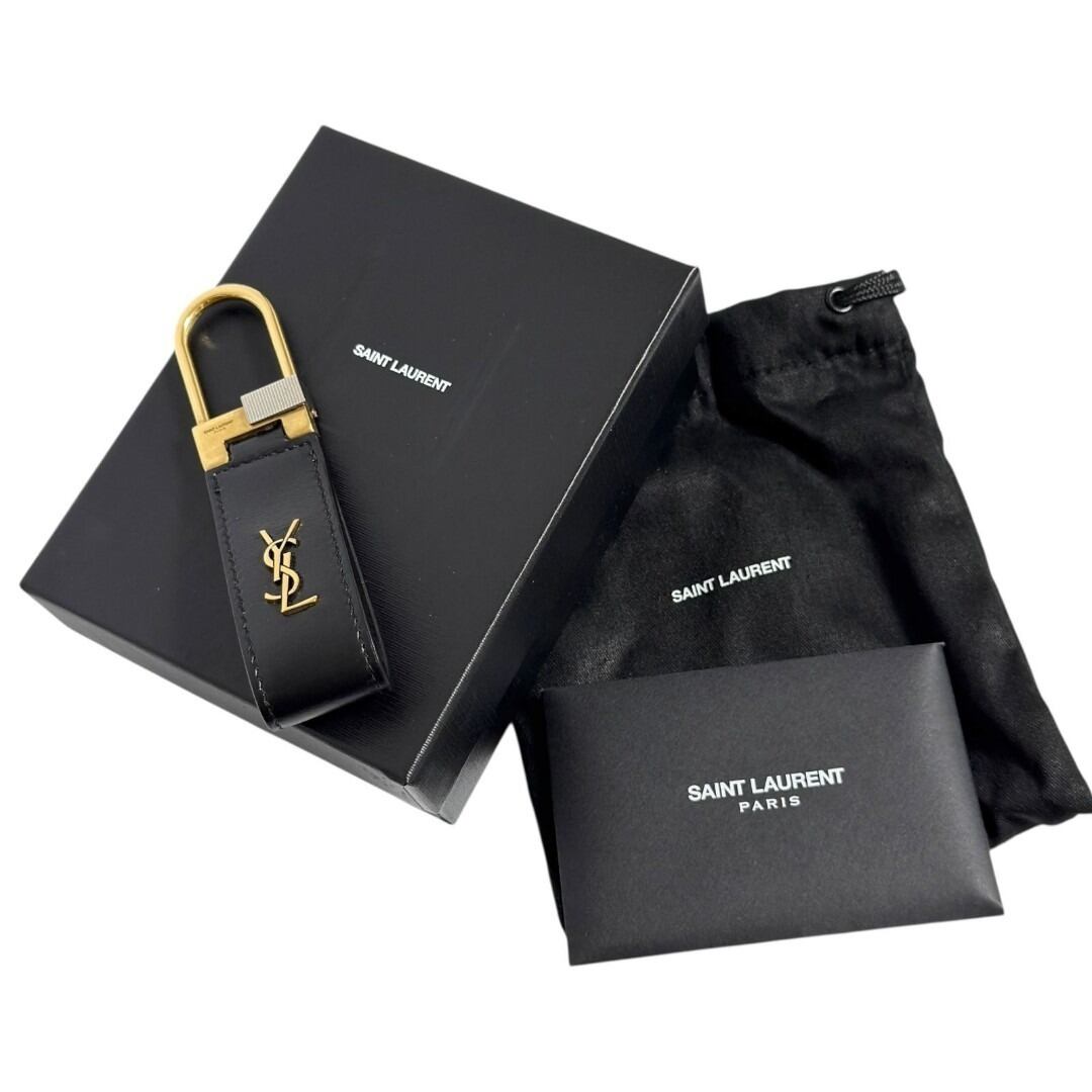 サンローラン メンズ タイニー モノグラム キーリング キーホルダー 黒