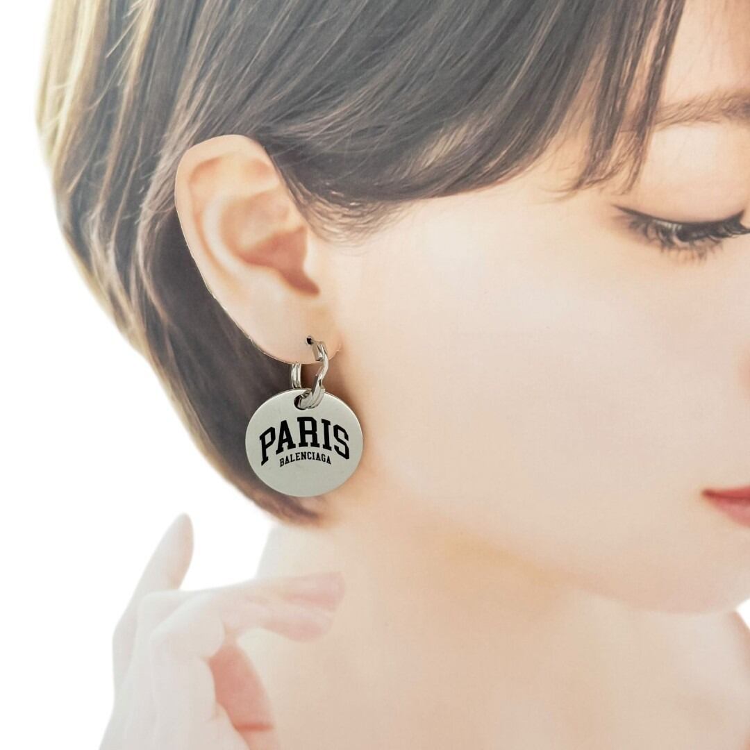 バレンシアガ レディース フープ ドロップ ピアス シティ パリス シルバー色