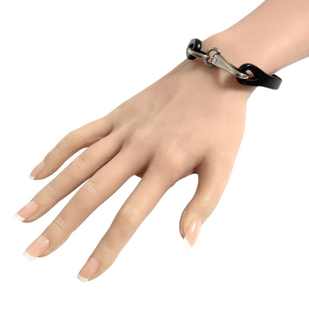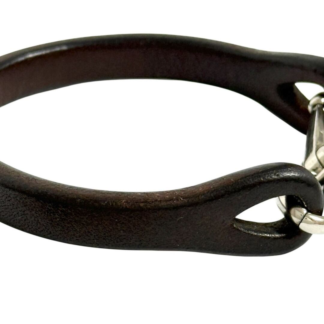 グッチ メンズ ブレスレット シルバー レザー ダークブラウン ヴィンテージ