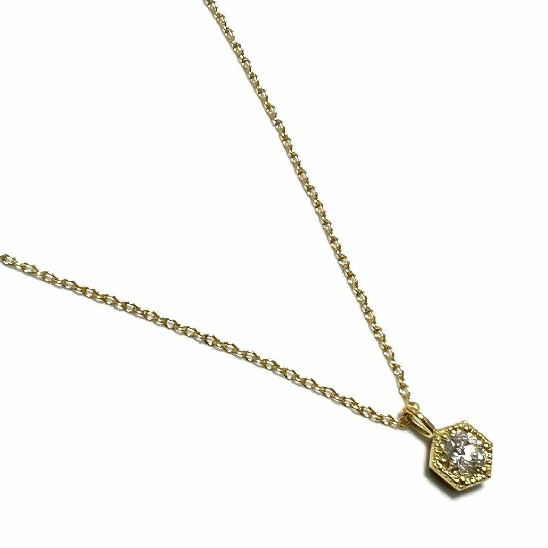 【0.18ct】オールニーク ネックレス ペンダント K18 ダイヤ ヘキサゴン