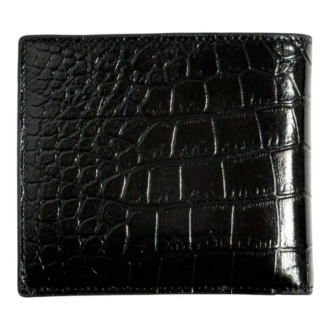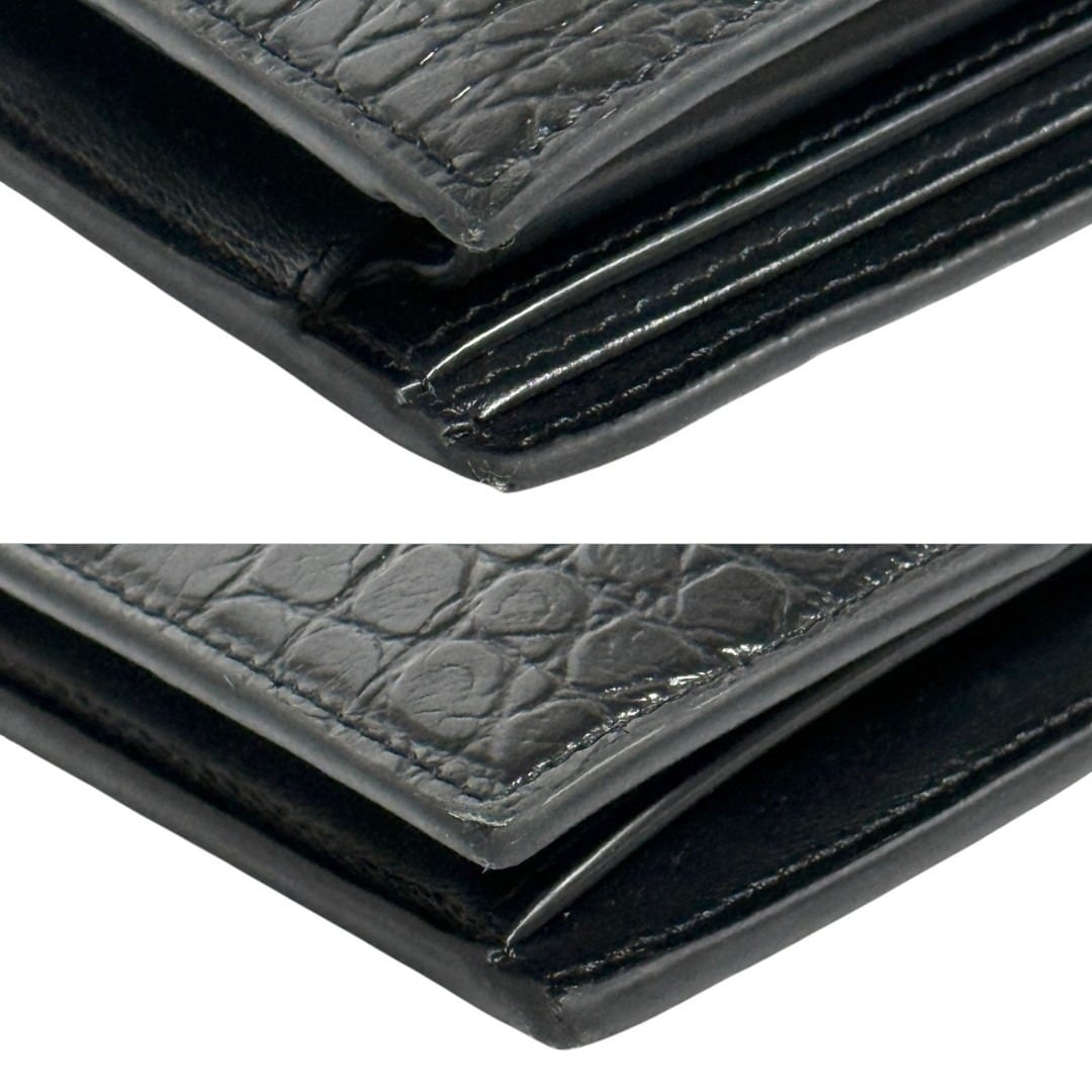 セリーヌ メンズ バイフォールドウォレット 2つ折り 財布 型押し 黒色 レザー