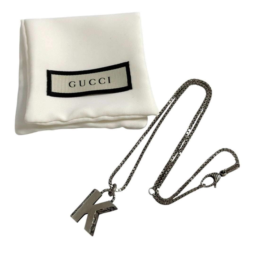グッチ 男女兼用 アルファベット ペンダント ネックレス イニシャルK シルバー