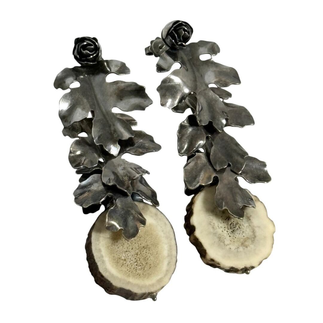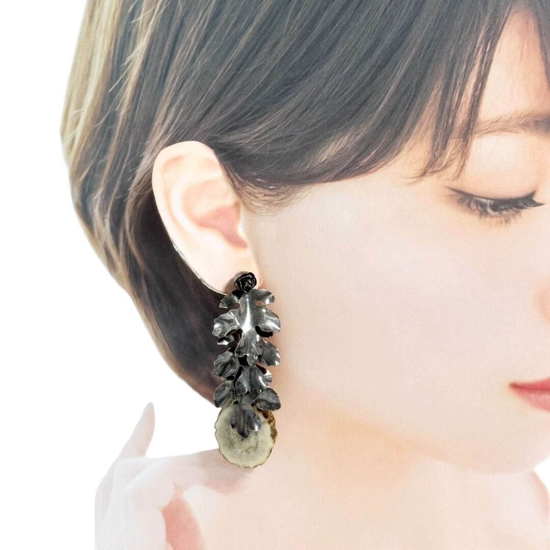 ボッテガヴェネタ レディース ドロップ ピアス シルバー いぶし仕上げ リーフ