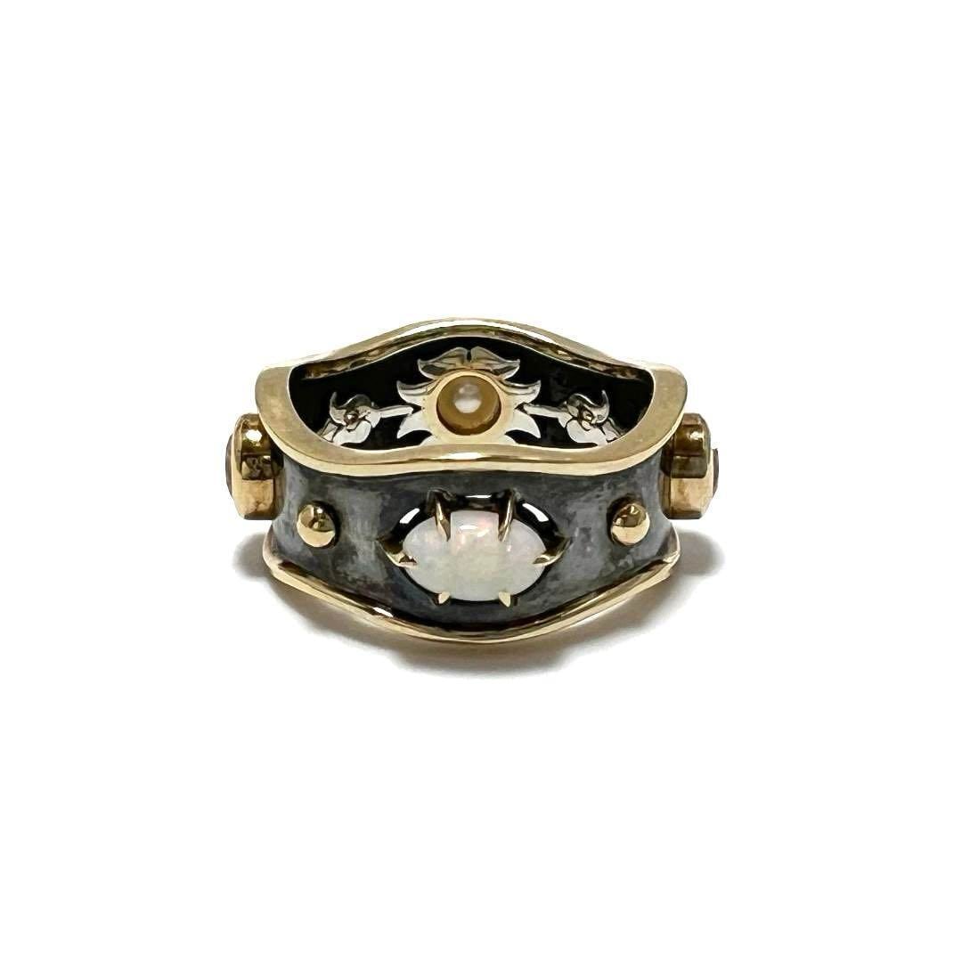 【10号・超高級】エリートップ Elie Top レディース 指輪 リング K18 イエローゴールド オパール アコヤパール ホワイトトパーズ