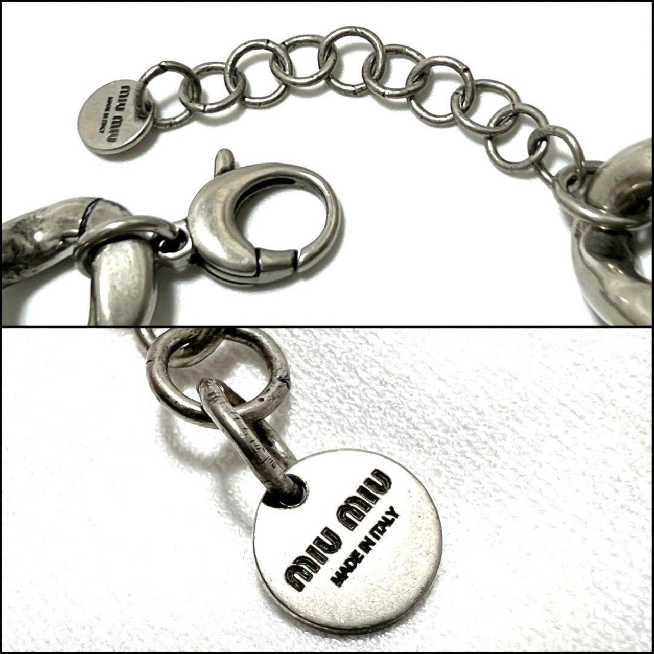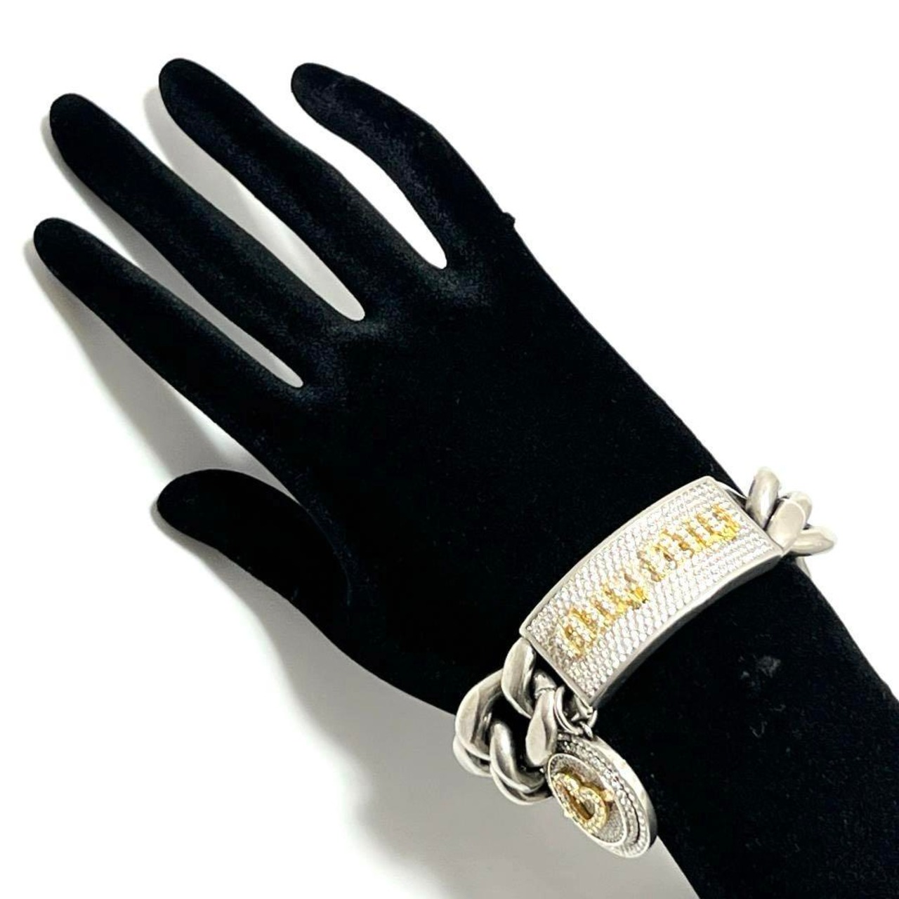 【希少】ミュウミュウ MIU MIU レディース パヴェチャーム付 クリスタルID ブレスレット