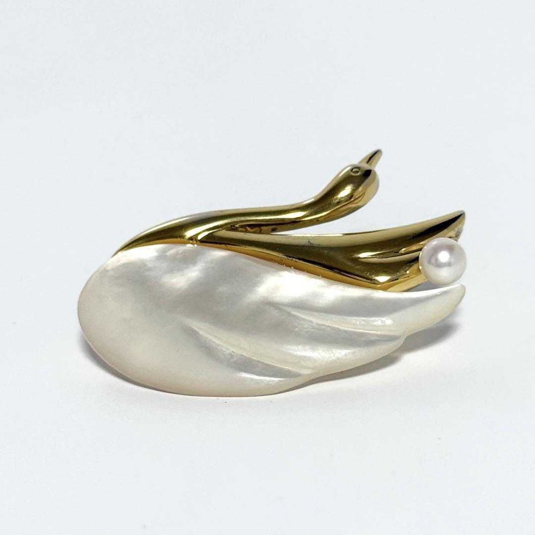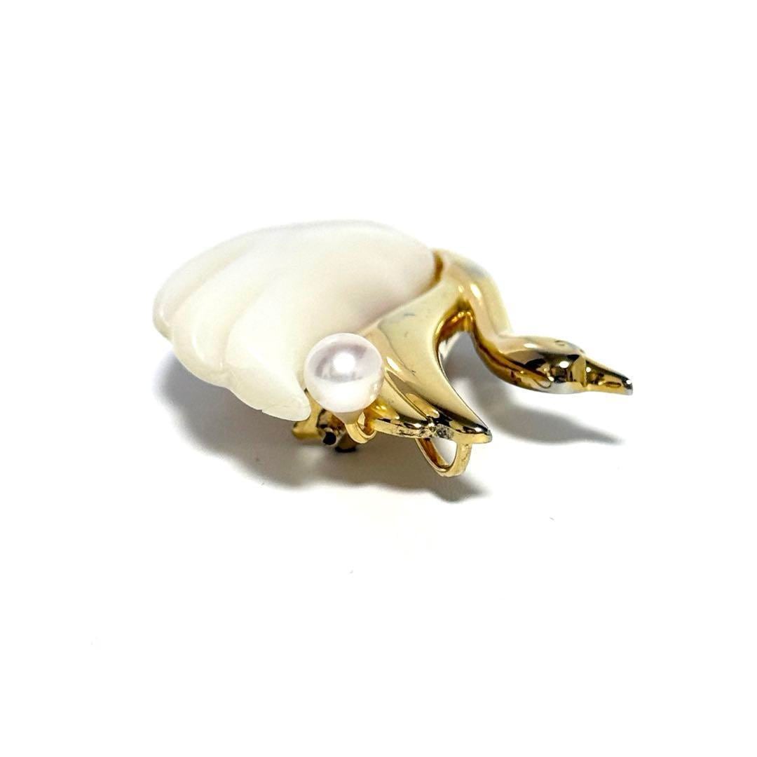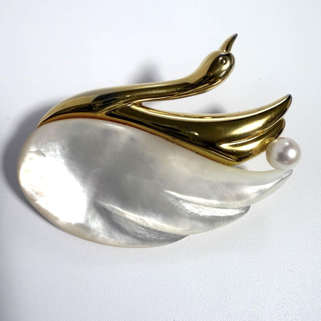 【白鳥】タサキ TASAKI レディース ピン ブローチ スワン パール シェル シルバー