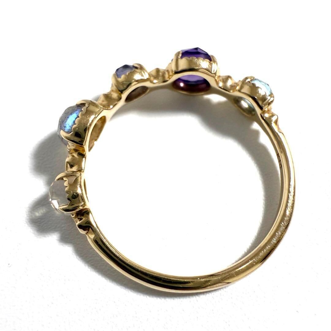 【9号】アガット レディース K10 マルチストーン リング 指輪 ゴールド アイオライト ラブラド アメジスト ホワイトラブラド