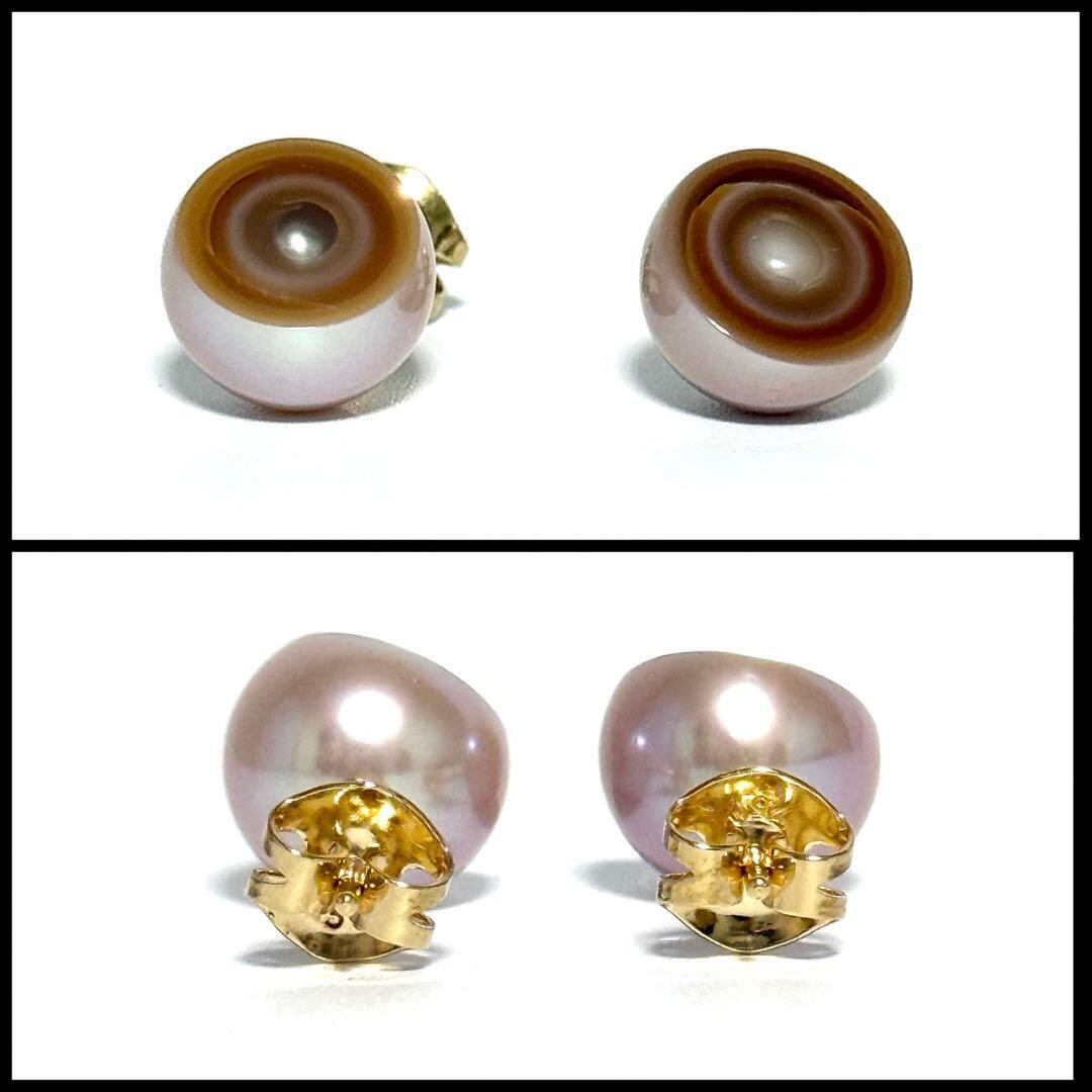 【美品】タサキ スライスド イヤリング ピアス M/G パール K18 イエローゴールド