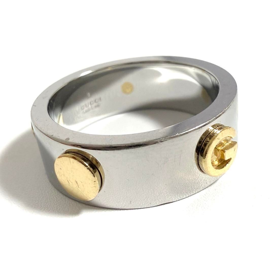 【16号】グッチ メンズ コンビ リング 指輪 ステンレススチール ゴールド